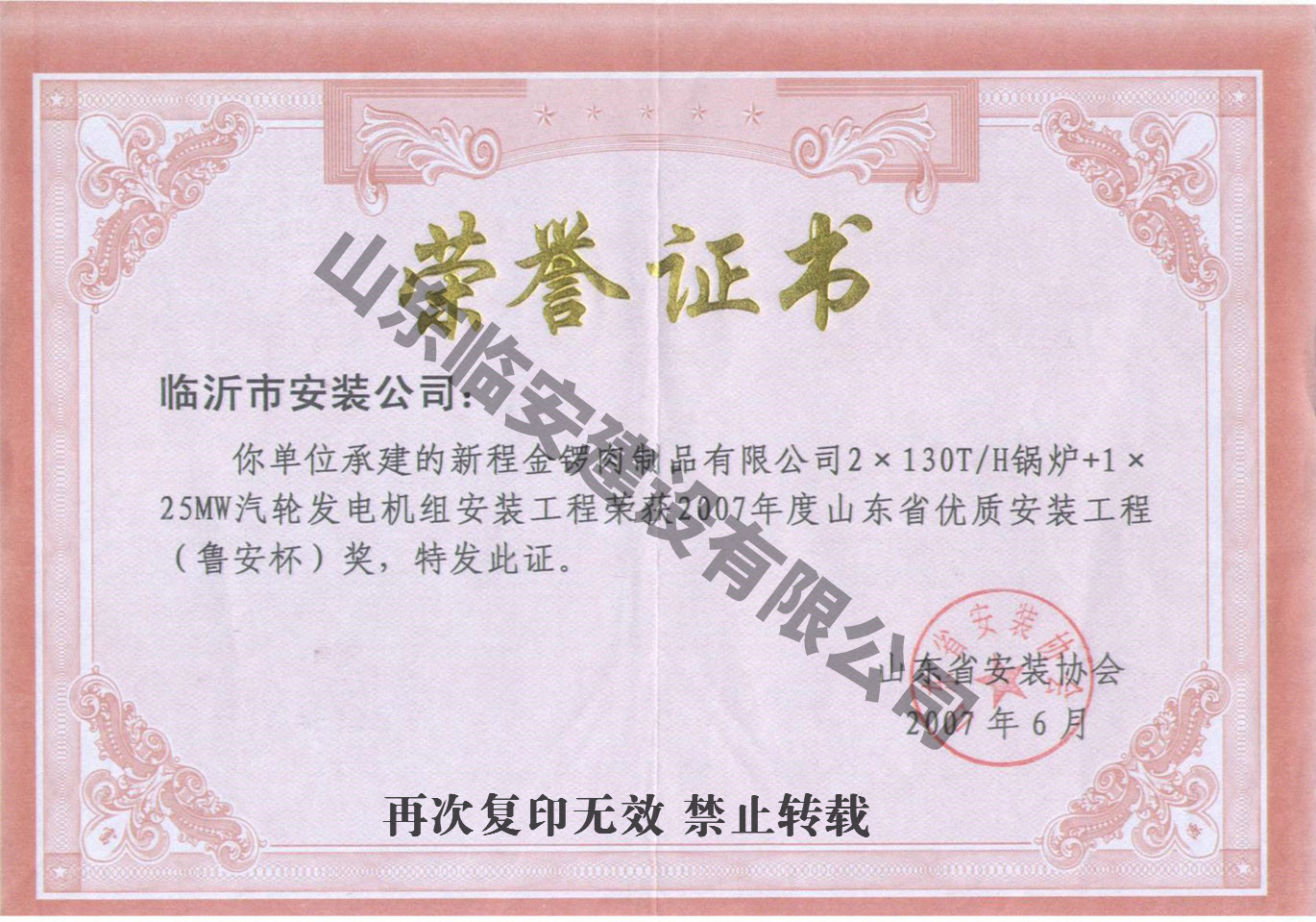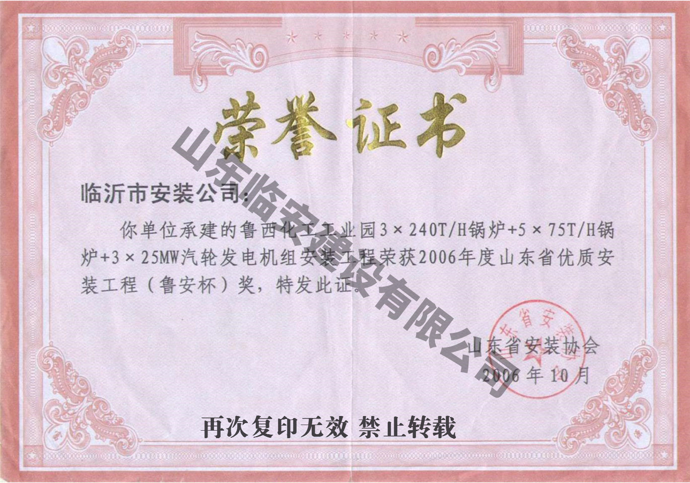 山東臨安建設有限公司(原名臨沂市安裝公司)始建于一九六六年,是由老國企改制的股份制企業(yè),公司總部位于羅莊區(qū)通達路211號,現(xiàn)有職工1000余名,各類工程經濟技術人員816名,其中高中級職稱64名,初級職稱204人。主要從事機電工程施工總承包,電力施工總承包,石油化工施工總承包,建筑裝飾裝修施工總承包,鍋爐安裝、改造I級(參數(shù)不限),GB1、GB2(2)級、GC1級、GD1級壓力管道安裝,起重機械B級安裝,電力設施承裝、承試,并取得了GB/T19001-2008質量管理體系認證證書、GB/T28001-2011職業(yè)健康安全管理體系認證證書、GB/T24001-2004環(huán)境管理體系認證證書,資信等級“AAA”級。